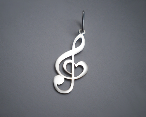 Elegantní zpracování univerzálního znaku hudby - houslového (nebo také G) klíče zkombinovaného se srdíčkem.