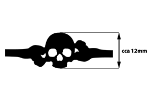 Prsten s ústředním motivem (mírně vypouklé) lebky bez spodní čelisti "zakleslé" mezi kostmi. Lebka i kosti jsou ručně tvarované a detailně poryté.