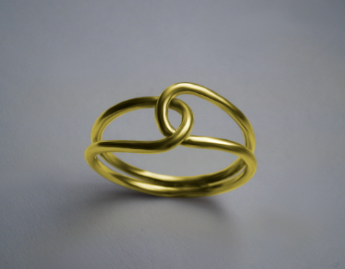 Prsten s jemnou kulatou šínou, která se sama sebou proplétá, což může symbolizovat průchod, propojení a průnik mezi světy.