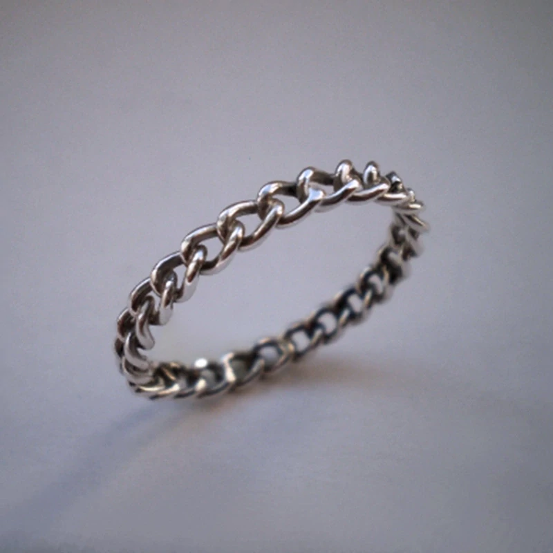 Jemný řetízkový vzor stočený do prstene. Elegantní, současný a minimalistický šperk s nápaditou texturou.