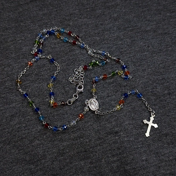 Stříbrný růženec s barevnými korálky 📿