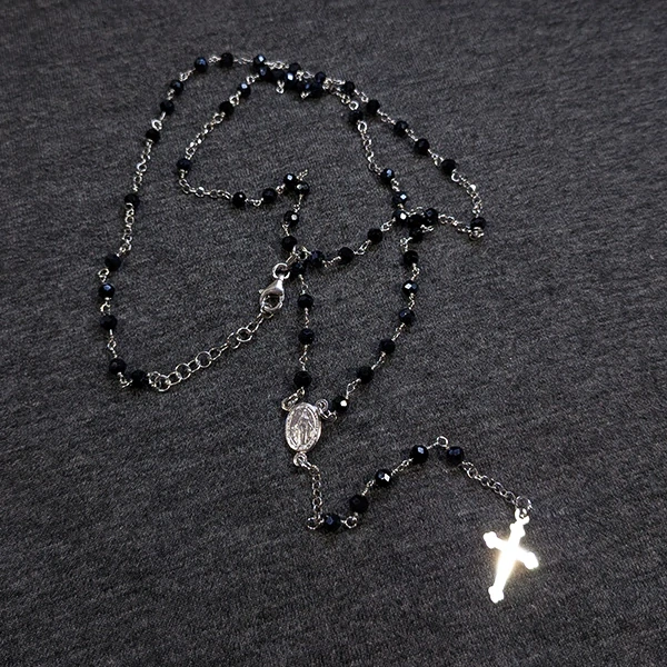 Stříbrný růženec s černými korálky 📿