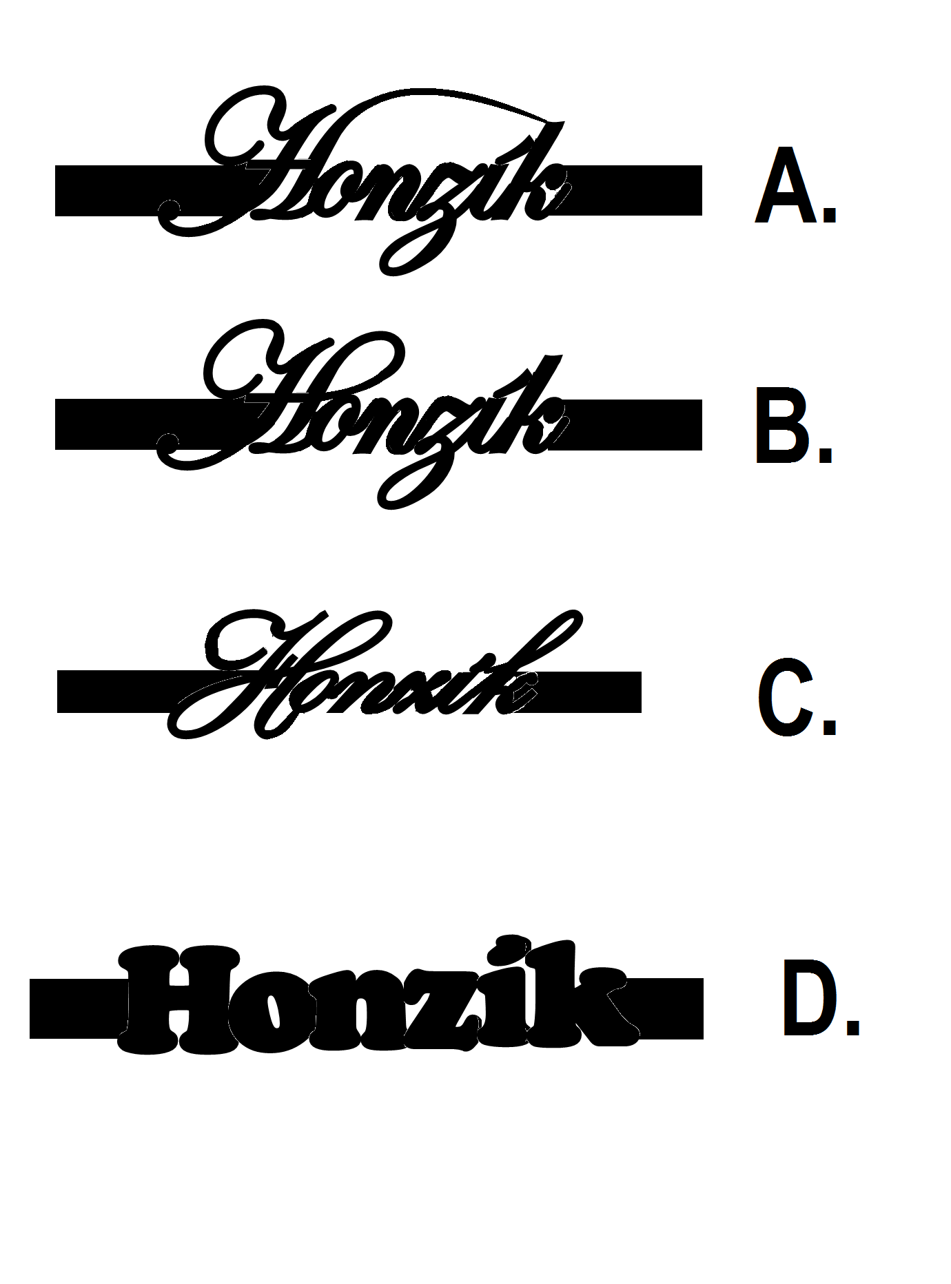 Uvedená cena je záloha (250 návrh + 750 materiál. Návrhy jsou vytvářeny na PC, ale každé jméno se i s přihlédnutím k velikosti různě ručně upravuje, posunuje, natáčí a spojují se písmenka, tak aby to bylo vhodné nejen z technického hlediska a vzhledu, ale i po praktické stránce. Není to tedy práce automatického programu na chvíli. V případě zrušení objednávky před výrobou bude vrácena záloha 750,-Kč na materiál.